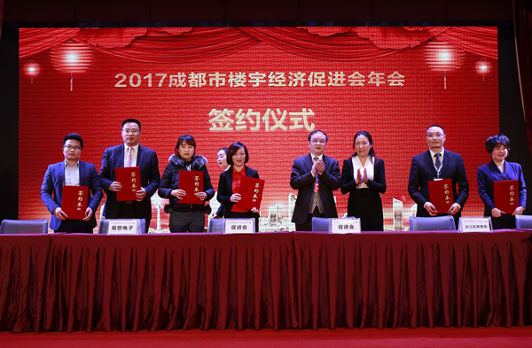 會議期間,秉承共享經濟時代,攜手共贏未來的發展愿景,成都市樓宇經濟促進會還與通威傳媒等多家單位舉行了戰略合作簽約儀式,共同促進成都市樓宇經濟健康發展。
