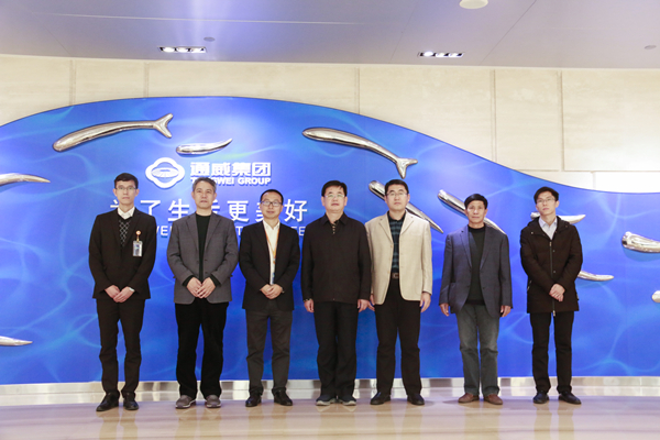2月16日,山東省東營市利津縣副縣長胡偉、利津縣海洋與漁業局局長王金山、利津縣發改局副局長王清泉、山東弘光新能源科技有限公司總經理王建國一行到訪通威新能源有限公司,通威新能源有限公司副總經理冷剛熱情接待并座談。