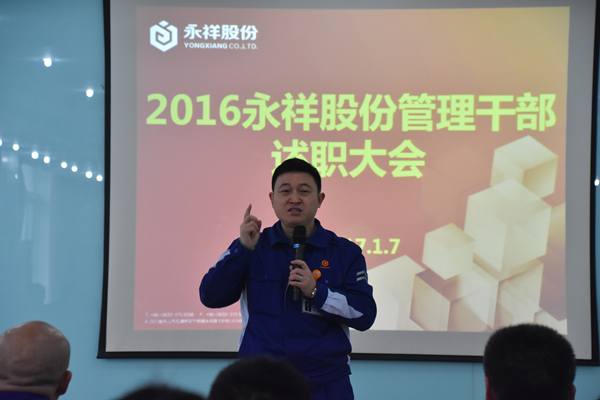 會上,18名干部分別就本職工作進(jìn)行了精彩回顧并提出2017年工作計劃。2016年,永祥股份積極開展項目調(diào)研、技術(shù)交流,掌握新能源及氯堿等相關(guān)產(chǎn)業(yè)的前沿資訊,與時俱進(jìn);在工程建設(shè)管理標(biāo)準(zhǔn)化方面不斷深入,建立并實施安全施工、過程管理相關(guān)標(biāo)準(zhǔn);多晶硅標(biāo)準(zhǔn)化從1.0升級到2.0,通過成立“三廢”、“冰機(jī)”、“渣漿”等攻關(guān)小組,開展專項攻關(guān),取得了豐碩成果,通過引進(jìn)JCC等先進(jìn)管理工具,強(qiáng)化執(zhí)行、安全生產(chǎn)邁上新臺階;永祥多晶硅在技術(shù)創(chuàng)新、工藝開發(fā)、項目申報等方面潛心投入,全年科技創(chuàng)新項目及合理化建議共計90項,全部實施可創(chuàng)造直接經(jīng)濟(jì)效益數(shù)千萬元;永祥樹脂通過組態(tài)生產(chǎn),精心管理,裝置優(yōu)化,強(qiáng)化技能培訓(xùn),生產(chǎn)經(jīng)營達(dá)到歷史最好水平;永祥水泥內(nèi)抓生產(chǎn)質(zhì)量,嚴(yán)控指標(biāo),外拓市場整合資源,不斷刷新紀(jì)錄,取得了歷史最佳業(yè)績;永祥硅材料工期質(zhì)量兩不誤,歷時5個月建成項目,開創(chuàng)業(yè)內(nèi)奇跡;采購在供應(yīng)商管理、“互聯(lián)網(wǎng)+采購”等方面進(jìn)一步推廣,降本增效取得優(yōu)異業(yè)績;財務(wù)中心在全面預(yù)算管理、流程管理、資產(chǎn)管理、信息化推廣等工作表現(xiàn)不俗,工作前移,為公司決策提供強(qiáng)大的支撐。