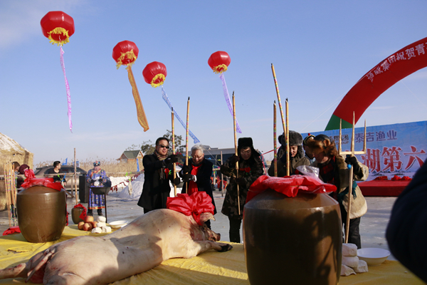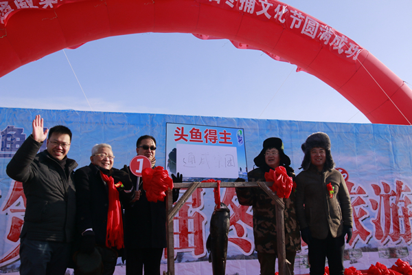 青花湖第六屆冬捕節(jié)開幕,通威集團(tuán)拍得吉祥頭魚