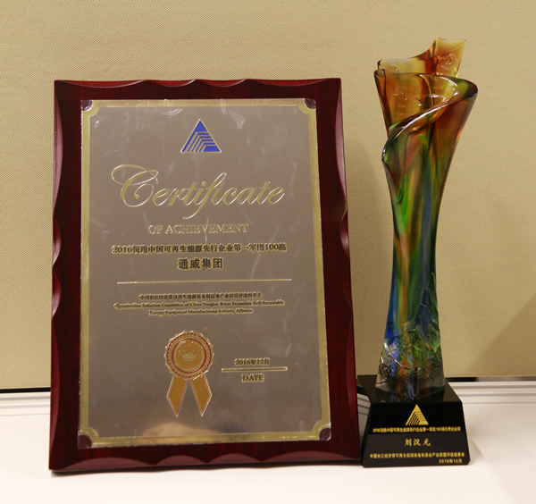 12月12日, “2016領跑中國可再生能源先行企業第一軍團100強及優秀企業家”頒獎典禮在南京隆重舉行。盛典期間,通威集團憑借雄厚的實力榮膺“2016領跑中國可再生能源先行企業第一軍團100強”,十一屆全國政協常委、通威集團董事局劉漢元主席榮獲“2016領跑中國可再生能源先行企業第一軍團100強優秀企業家”。