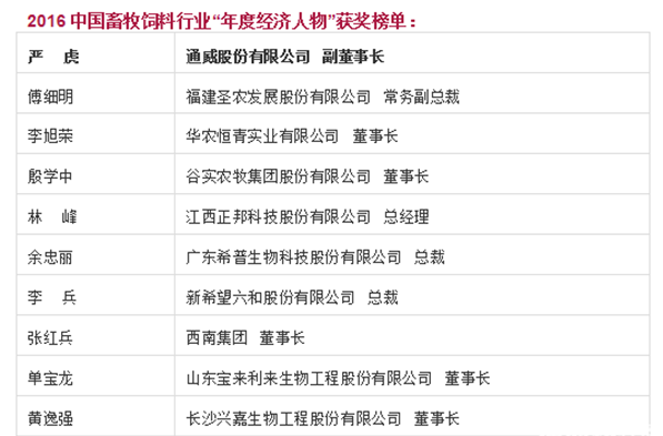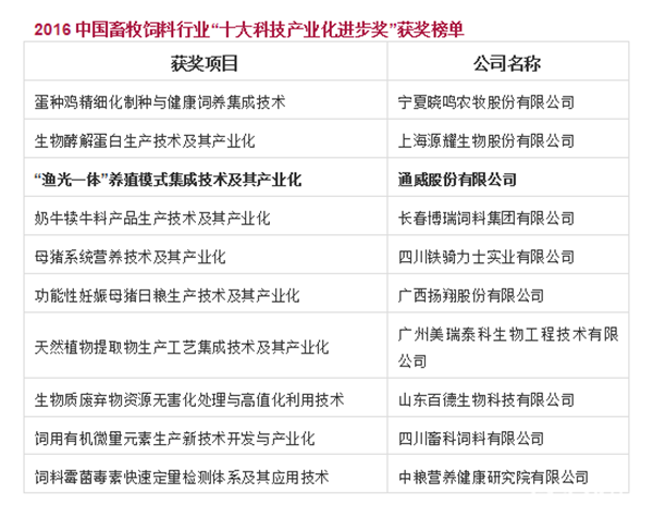 12月10日-11日,2016年第十三屆中國(guó)畜牧飼料科技與經(jīng)濟(jì)高層論壇在北京會(huì)議中心隆重舉行,本次論壇由中國(guó)飼料工業(yè)協(xié)會(huì)指導(dǎo),中國(guó)林牧漁業(yè)經(jīng)濟(jì)學(xué)會(huì)飼料經(jīng)濟(jì)專(zhuān)業(yè)委員會(huì)主辦。中國(guó)林牧漁業(yè)經(jīng)濟(jì)學(xué)會(huì)飼料經(jīng)濟(jì)專(zhuān)業(yè)委員會(huì)理事長(zhǎng)蔡輝益主持論壇開(kāi)幕式,十一屆全國(guó)政協(xié)常委、通威集團(tuán)董事局劉漢元主席受邀致開(kāi)幕詞,農(nóng)業(yè)部畜牧業(yè)司副司長(zhǎng)王俊勛致歡迎詞,全國(guó)畜牧總站站長(zhǎng)、中國(guó)飼料工業(yè)協(xié)會(huì)常務(wù)副會(huì)長(zhǎng)、秘書(shū)長(zhǎng)楊振海,中國(guó)畜牧業(yè)協(xié)會(huì)常務(wù)副會(huì)長(zhǎng)、農(nóng)業(yè)部畜牧總站原站長(zhǎng)李希榮等領(lǐng)導(dǎo)發(fā)表講話(huà),廣大協(xié)會(huì)專(zhuān)家、行業(yè)領(lǐng)軍人物、學(xué)術(shù)界知名經(jīng)濟(jì)學(xué)家等共襄盛會(huì)。通威股份嚴(yán)虎副董事長(zhǎng)、通威股份水產(chǎn)技術(shù)總監(jiān)張璐、通威股份總裁助理兼華北戰(zhàn)區(qū)總裁周澎出席論壇。論壇期間還隆重舉行了“通威杯·中國(guó)畜牧飼料年度頒獎(jiǎng)盛典”,通威股份嚴(yán)虎副董事長(zhǎng)榮獲“十大年度經(jīng)濟(jì)人物”稱(chēng)號(hào),通威“漁光一體”養(yǎng)殖模式集成技術(shù)及其產(chǎn)業(yè)化榮獲“十大科技產(chǎn)業(yè)化進(jìn)步獎(jiǎng)”。