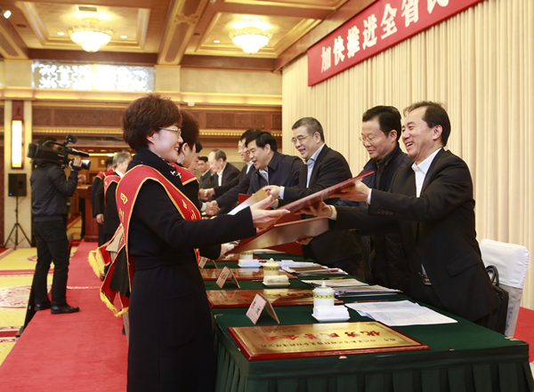 當天大會通報表彰了通威集團、永祥股份等100家優(yōu)秀民營企業(yè),通威集團禚玉嬌總裁,通威股份董事、永祥股份董事長兼總經(jīng)理段雍分別代表通威集團、永祥股份上臺領取“優(yōu)秀民營企業(yè)”獎牌。大會同時勉勵獲獎企業(yè)珍惜榮譽、再創(chuàng)佳績,大力弘揚“愛國、敬業(yè)、誠信、守法、貢獻”的價值取向,為推動全省經(jīng)濟加快發(fā)展做出更大貢獻。會后,禚玉嬌總裁與段雍董事長參加了當天下午舉行分組討論,為推進四川民營經(jīng)濟發(fā)展積極建言獻策。