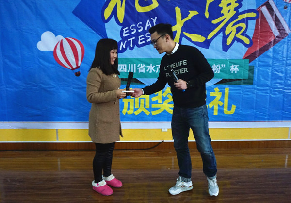 “至水校,皆為習牧者、漁者之屬。初時,余巡水校一遭,覺水校鳥語絮絮、草卉凈植、錦鱗淺池,可覺神爽氣清。”2014級畜牧專業的劉子偉同學憑借這篇文言文體《逐夢嘆》斬獲征文比賽一等獎桂冠,獲得1500元現金大獎。劉子偉是大三學生,已經到了實習時間,特意為此次活動留在了學校。領獎時,他幽默風趣,在現場與同學們互動問答,拋出“能力和努力哪個更重要?”“如何通過創新出彩?”等話題,贏得陣陣掌聲,并鼓勵同學們在校多努力、多嘗試,夢想就一定有實現的可能。