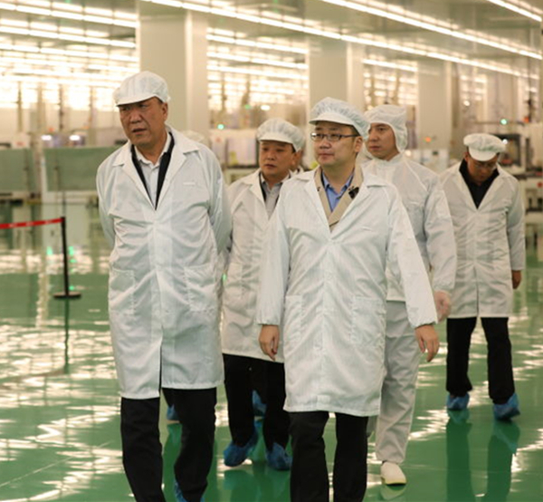 謝毅董事長陪同張世明副市長參觀高效晶硅S1電池車間