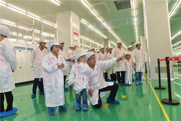 家屬們參觀通威太陽能(成都)有限公司S1電池車間