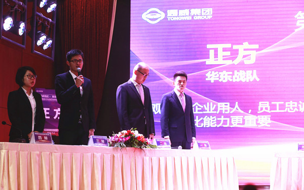 11月2日下午1時50分,第一場企業文化辯論賽火熱開啟。第一組正方辯論團隊由華東戰區四位辯手組成,反方由華北戰區四位辯手組成,雙方的辯題為“企業用人,員工的忠誠與能力誰更重要?”正方認為,忠誠比能力更重要,如今的飼料行業競爭激烈,商場如戰場。如果員工不忠誠,企業如何能用?能力在工作中可以培養,但忠誠卻是員工的核心;反方卻認為,企業用人,能力比忠誠更重要,能力直接為企業創造效益,進入一個企業的前提就是能力,一個企業重忠誠輕能力必將導致人員臃腫、人浮于事。
