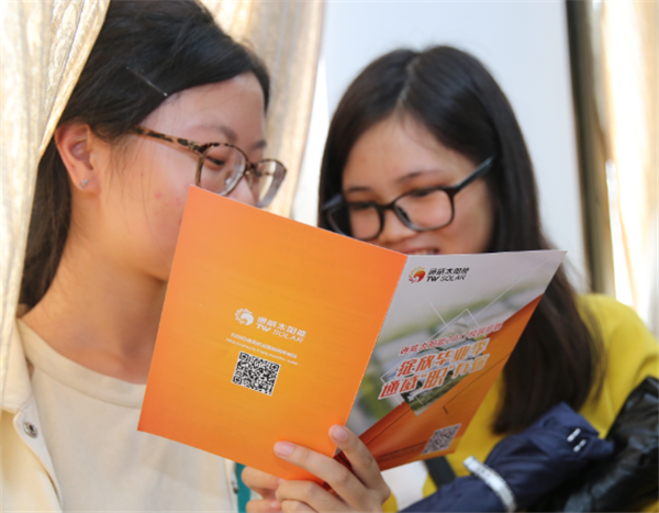 招聘會上,通威太陽能(成都)有限公司中干團隊就公司規模、生產運營情況、工作生活環境、職業發展通道等向同學們進行了詳細介紹,將通威太陽能(合肥、成都)有限公司生動形象地展現在同學們面前。在答疑互動環節,同學們爭先舉手提問,現場氣氛熱烈。隨后的現場筆試中,同學們根據應聘崗位,分別進行了綜合筆試與專業筆試,筆試后共收到答題卷300余份,巡回招聘會首站圓滿成功。