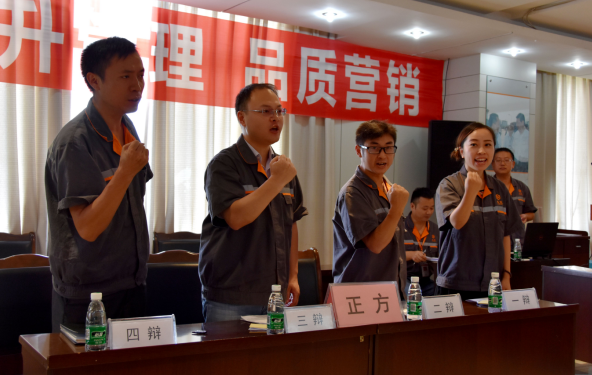 本次辯論賽具有“三高”特征,一是比賽規(guī)格高。作為永祥股份辯論決賽,本次比賽是對(duì)各公司、分廠前期辯論大賽成果的進(jìn)一步檢閱;二是評(píng)委級(jí)別高。永祥股份經(jīng)營管理班子、各子公司高管親臨現(xiàn)場(chǎng)并擔(dān)任評(píng)委,相關(guān)中干親自擔(dān)任啦啦隊(duì)長,為隊(duì)員們加油鼓勁;三是辯手水平高。參加辯論大賽的選手均是通過層層選拔,脫穎而出的佼佼者,也是在“講用活動(dòng)”中表現(xiàn)突出的員工,在日常企業(yè)文化建設(shè)中有較豐富的實(shí)踐經(jīng)驗(yàn)。