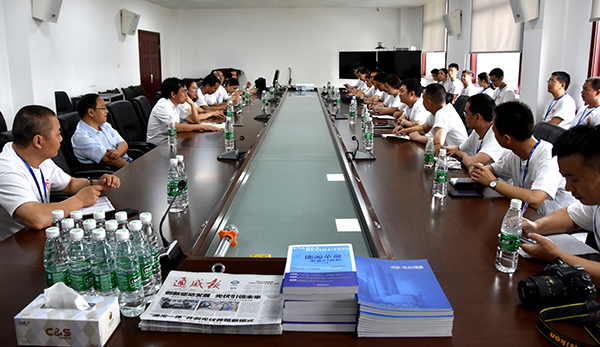 隨后,雙方團隊進行了深入座談,永祥團隊分享了參觀感悟,大家積極發言,現場氣氛熱烈。段董事長指出,本次參觀交流,收獲很大:一是觀念上的沖擊和洗禮,學習四川通威事事爭創一流,樹立標桿企業的意識;二是學習危機意識、細節管理、勞動效率等管理思想。段董事長表示:永祥的管理相比而言顯得粗放,回去應活學活用,進一步落實管理措施和技術改進;三是通過了解通威發展史,領會文化內涵,轉變觀念,全面融入通威文化,踐行文化,學以致用,快速落實。李總表示,四川通威將于7月組團到永祥就設備精準管理、安全管理、標準化和降本增效等方面進行深入交流。