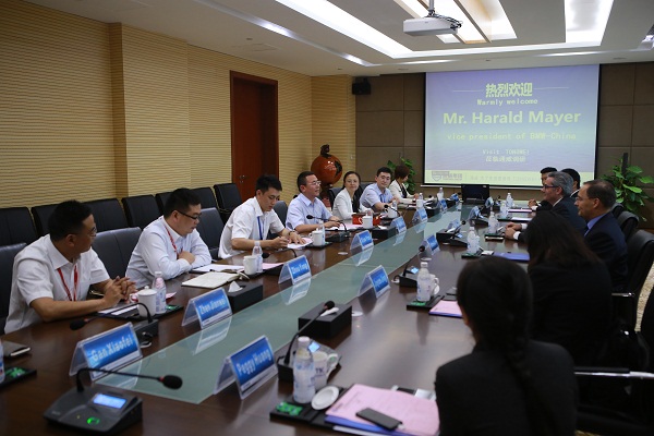 5月26日,寶馬中國大客戶和機構銷售副總裁馬涵德先生(Mr. Mayer)、國際直銷和特種車輛銷售高級經理蓋渡福先生(Mr. Geissler)、酒店和航空行業經理井英杰、西區大客戶銷售經理施諾、四川中達成寶汽車銷售有限公司大客戶經理張闊一行到訪通威集團總部,通威集團副總裁黃其剛、集團工會主席李思宇、股份信息總監周勇等高管熱情接待并座談。