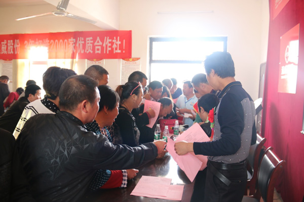 培訓結束后,會議現場進行了裕農合作社社員入社簽約。入社現場氛熱烈,各專業養殖戶紛紛要求加入裕農養殖合作社。到場參會人數79人,入社人員達到54人,總人數占比近70%,其中近30人是新增的用戶,占比56%。據市場人員反饋,會后已陸續有養殖專業戶咨詢并加入了合作社。