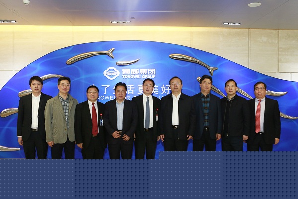 韓書記對于通威集團的熱情接待以及通威長期以來對高郵地方養殖業發展所做的貢獻表示感謝。他說,高郵市是歷史上的魚米之鄉、江蘇省第三大湖高郵湖就在境內,水域面積占比達到40%,在水產養殖方面和光伏產業上都有一定的基礎。通威“漁光一體”項目實現了“水上產清潔能源,水下產優質通威魚”,是農業與新能源的完美結合,希望雙方加強在“漁光一體”上的交流與合作,通過引進通威的科學養殖方法,進一步促進高郵地方經濟的發展,實現共贏。