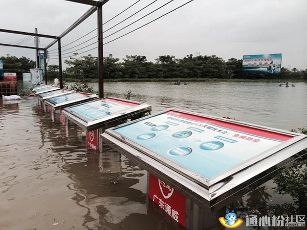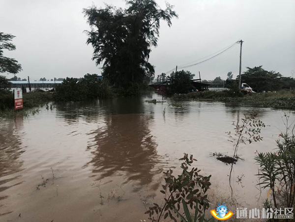 5日晚,通心社記者第一時間聯系到海南通威、廣東通威、南寧通威的服務人員,了解臺風對當地的水產養殖影響及養殖戶的受損情況。據廣東通威服務經理周爭志介紹,受臺風“彩虹”影響,廣東佛山順德、廣州番禺及汕尾海豐遭遇龍卷風,5日遇強降雨,佛山一帶部分低洼魚塘岸上的水深超80厘米,多地魚塘漫塘情況嚴重,上演“路面搶魚”一幕。此外,廣東通威數位用戶池塘被雨水淹沒,受損嚴重。記者從前方發回的圖片及視頻資料可以看到,魚塘旁邊展牌已被淹沒一半,很多養殖戶屋頂被掀翻,魚塘邊漂浮著很多雜物,損失慘重,現場情況不容樂觀。通威技術服務人員第一時間通過手機短信提醒用戶,同時為他們想辦法,提方案,盡量減少他們的損失。