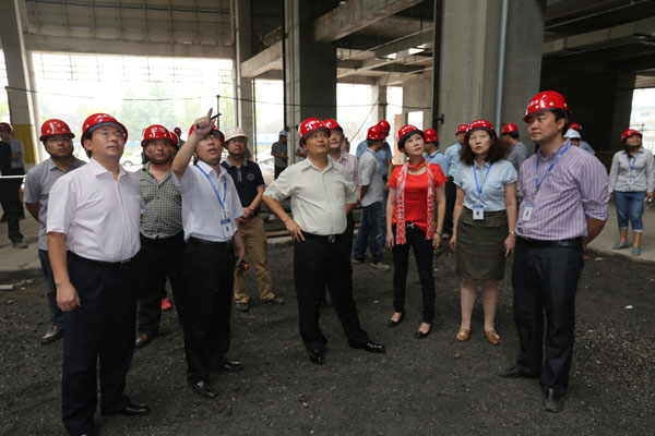 9月18日,在中國傳統節日“中秋節”前一天,十一屆全國政協常委、集團董事局劉漢元主席,集團管亞梅董事長,集團禚玉嬌常務副總裁、黃其剛副總裁等領導一行蒞臨通威國際中心,視察工程建設進展,了解通宇物業工作開展以及招商招租情況,并向正抓緊進行工程施工建設的工程技術人員致以中秋國慶雙節的親切問候,對他們為工程建設所付出的辛勤勞動表示衷心感謝。項目部第一負責人高文閣、通宇物業公司總經理孫總以及工程技術人員、各參建單位主要人員陪同視察。