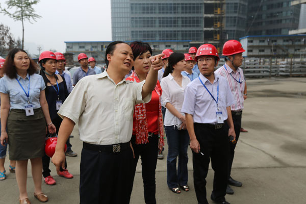 當天下午兩點,劉主席、管董事長等一行準時來到項目部,一下車即走進了正在施工作業的通威國際中心項目工地。中秋、國慶節將至,大家的工作生活安排得怎么樣?劉主席與管董事長十分惦念。踏著泥濘的小道,劉主席、管董事長一行與工友們親切握手、親熱談心,把代表集團總部的關心與問候帶給了在場的每一位員工。