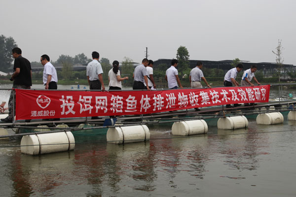 為深化落實集團董事局劉漢元主席關于“科技力量,致富保障”的重要指示,7月22日,通威股份吳宗文項目組于成都雙流永興漁業專業合作社召開了“底排污”漁業環保工程專利技術示范現場研討會(該集成技術已獲專利一項,《一種底排污水自溢系統》ZL 2012 2 0309821.X)。通威股份副總裁、市場營銷總監兼技術總監王尚文,總裁助理劉輝芬等出席會議,來自沅江通威、天門通威、廣東通威、廣東通威魚、重慶通威、四川通威、雙流特種料、成都通威科技、通威原種場、南京通威科技、雙流永興漁業專業合作社、成都軍區新津培訓基地、萬福水產品養殖場等全國8個推廣示范點的相關領導及人員同總部技術、市場體系人員共計41人參加了此次現場研討會。