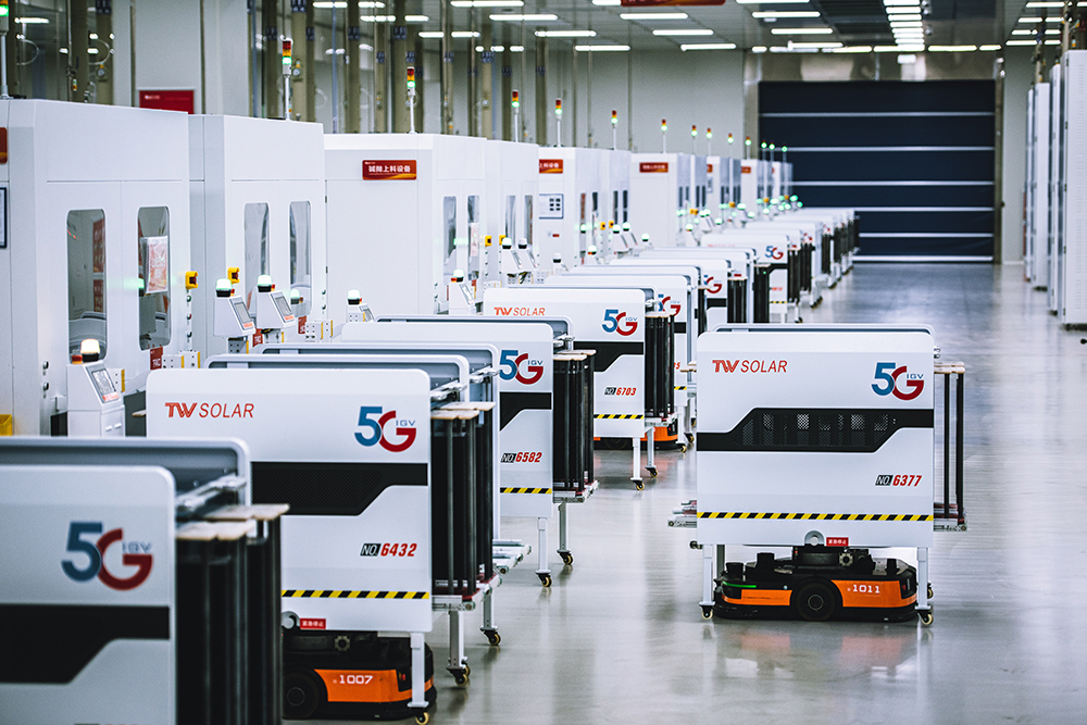 這里是通威太陽能金堂基地,也是在全國乃至全球工藝技術先進的電池片生產基地。2021年,通威太陽能與中國電信、華為強強聯合,在金堂打造全球領先的5G工業應用園區。與傳統電池片生產線相比,通威太陽能金堂基地用工減少約62%,能源消耗降低約30%,生產效率提升約161%。