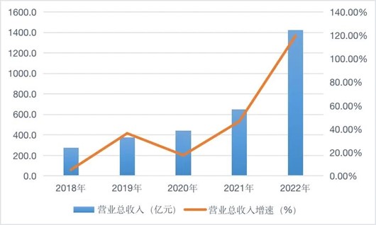 2018年至2022年通威股份營業總收入及其增速
