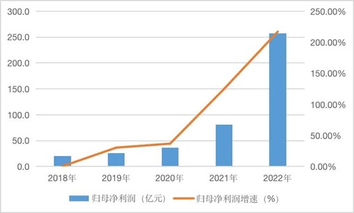 2018年至2022年通威股份歸母凈利潤及其增速