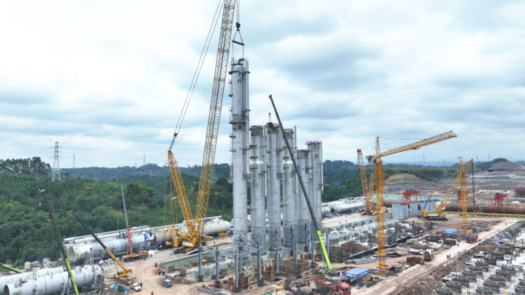 “決戰(zhàn)四季度,在場(chǎng)施工人員日均1200人以上,日均施工機(jī)械300臺(tái)以上。項(xiàng)目建設(shè)采取‘白加黑’、值班輪崗的模式,加快推進(jìn)。”永祥能源科技項(xiàng)目指揮長(zhǎng)助理馬彪介紹,該項(xiàng)目有主要裝置51個(gè),截至目前,已陸續(xù)完成區(qū)域變電所、機(jī)柜間、消防水池等11個(gè)裝置土建工程的封頂工作,以及精餾筏板、尾氣回收筏板的澆筑。精餾塔吊裝正有序進(jìn)行中,整個(gè)項(xiàng)目建設(shè)進(jìn)度比計(jì)劃提前了2個(gè)月。