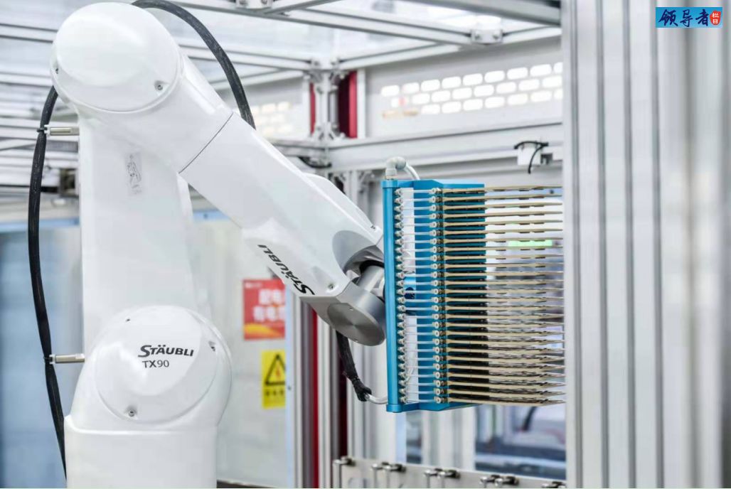 具體到通威太陽能成都四期3.8GW電池項目,其實現當年開工、當年投產,車間總面積約5萬平米,共有16條全封閉的智能制造高效晶硅電池片自動化生產線,全部生產大尺寸電池片,生產成本更低、單片瓦數更高,均由自動抓取的機械臂、智能運輸機器人組成。與傳統的太陽能電池片產線相比,同等產能的通威智能制造生產線,能使用工減少約62%,能源消耗降低約30%,生產效率提升約161%。