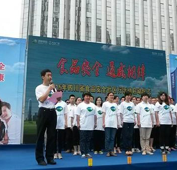 四川省食品藥品監督管理局、四川省保護消費者權益委員會、成都市食品藥品監督管理局、中國食品報、通威集團、成都金牛萬達廣場管理公司、以及聯合協辦單位四川省飯店與餐飲娛樂行業協會、四川省工商聯川菜調料商會、成都市食品商會、成都農產品批發市場管理公司等單位相關負責人,以及現場近500多名市民共同參與,見證了本次活動盛況。通威集團作為本次活動參與企業代表,20名通威人在臺上的莊嚴誠信宣誓,承諾嚴格遵守《食品安全法》,牢固樹立食品安全第一責任人意識,為社會提供安全食品。