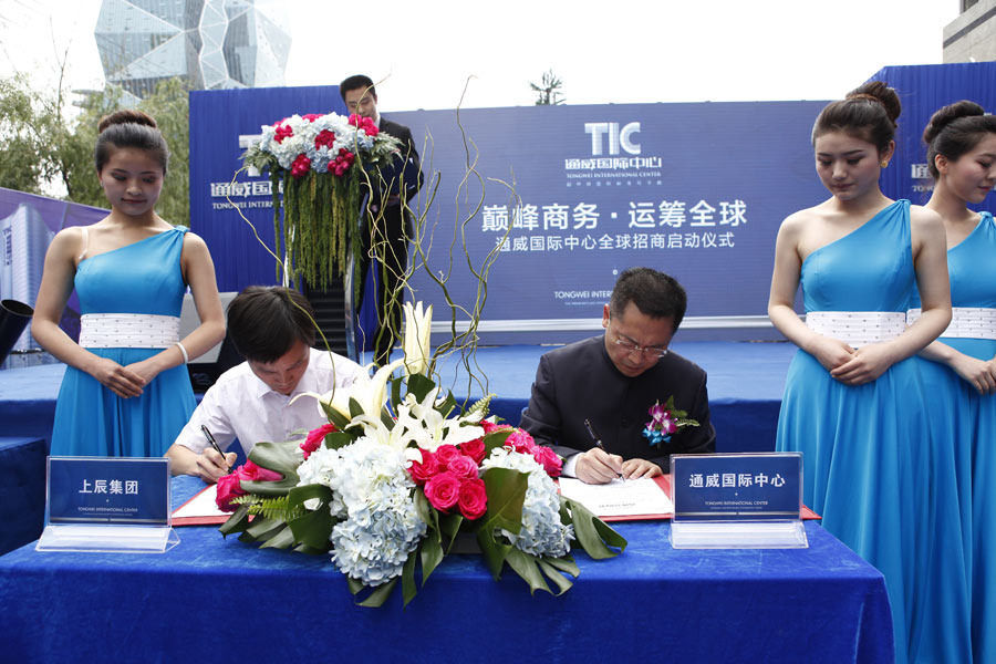 為禮獻成都第十二屆財富全球論壇,5月18日,以“巔峰商務運籌全球”為主題的通威國際中心全球招商儀式在位于成都天府大道與天府二街交匯處的通威國際中心項目現場盛大啟幕,通威集團傾力打造的世界級商務辦公典范————通威國際中心(TIC)由此隆重啟幕,開門迎賓。作為國際城南CBD核心首家真正意義的超甲級國際標準寫字樓,通威國際中心以世界級奢華尺度締造的頂級商務平臺甫一亮相,即震撼成都,并正式執掌天府城南運籌全球財富的巔峰商務平臺。